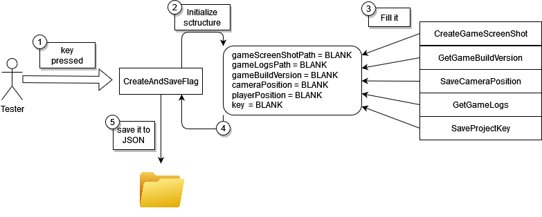 The principal purpose of the plugin is to catch information from the game, and save them in JSON format. These information are catch when the tester press a key that have been defined in the editor.